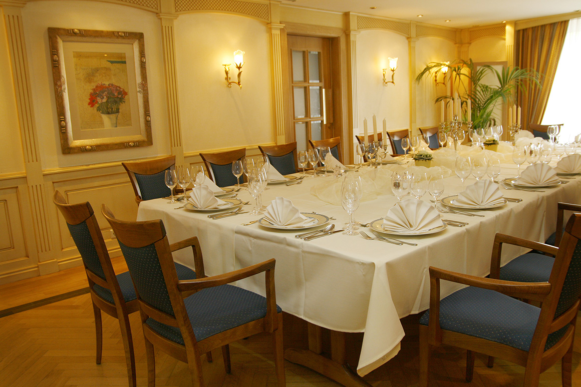 Der kleine Salon ist der ideale Raum für kleinere Festlichkeiten bis zu 30 Personen. Ob für einen Geburtstag, eine Hochzeit, eine Tagung oder ein Jubiläum, die behagliche Atmosphäre des kleinen Salons lässt jeden Anlass zu einem Fest werden. Auch im Sommer ist dieser Raum durch seine Klimaanlage wohl temperiert!